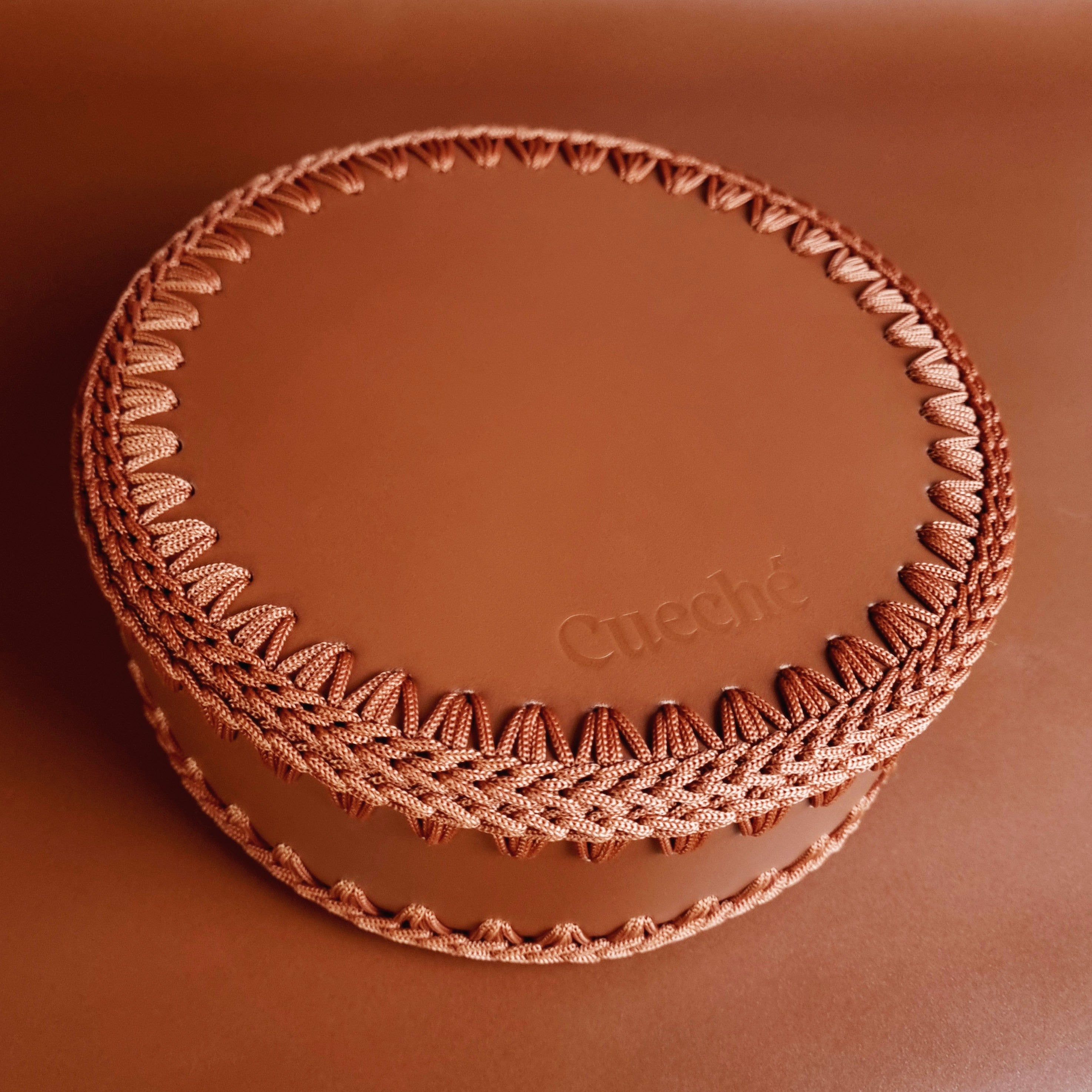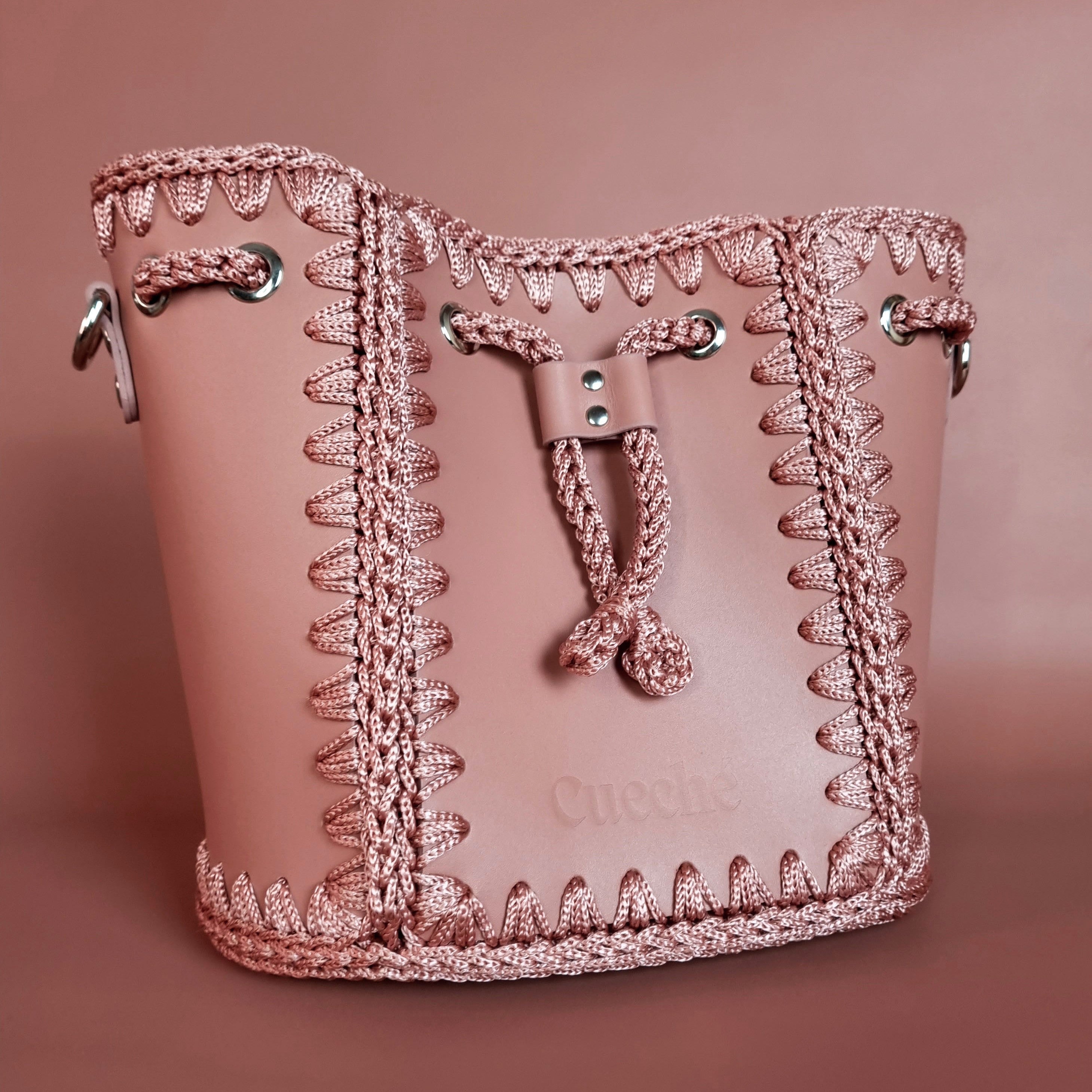 Confeccionado a mano en piel tipo napa, forrado con serraje y tejido con cordón, cuenta con un único compartimento sin divisiones para aprovechar al máximo su interior.